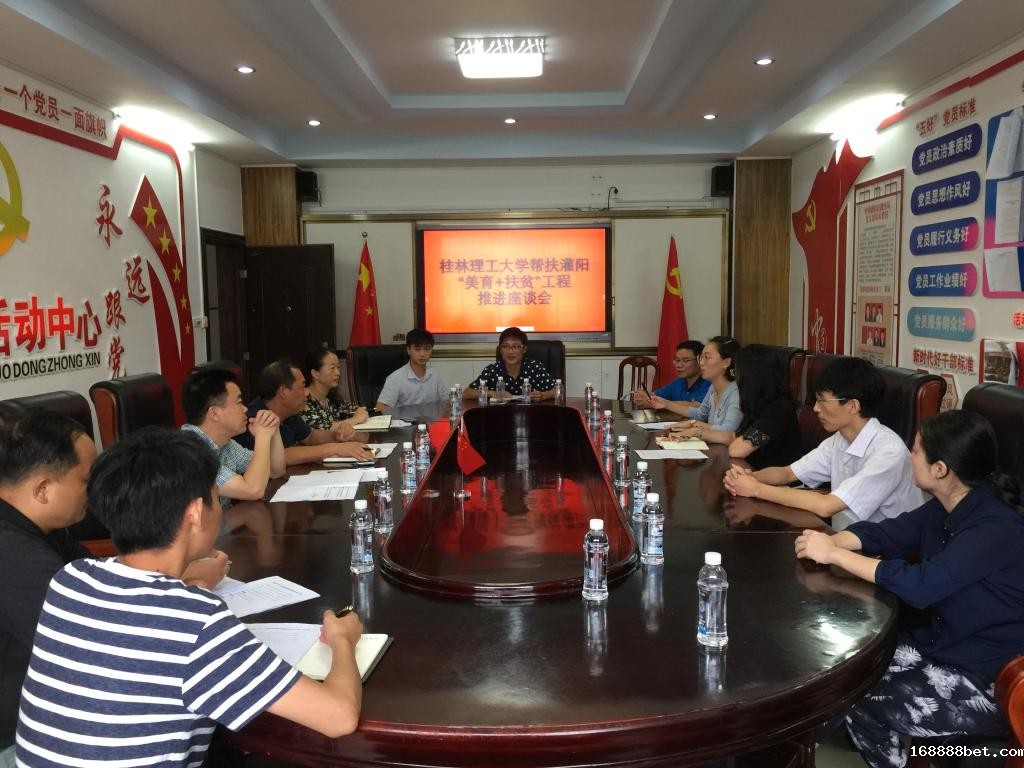 2019年6月13日,在学校组织部扶贫办和灌阳县教育局的支持下,韦德电竞直属党支部组织10余名教师赴灌阳开展了“美育+扶贫”工作。在灌阳县教育局开展了“美育+扶贫”推进座谈会,机关党委专职副书记、扶贫办常务副主任潘思伊、韦德电竞副主任兼支部副书记万千参加了此次活动。