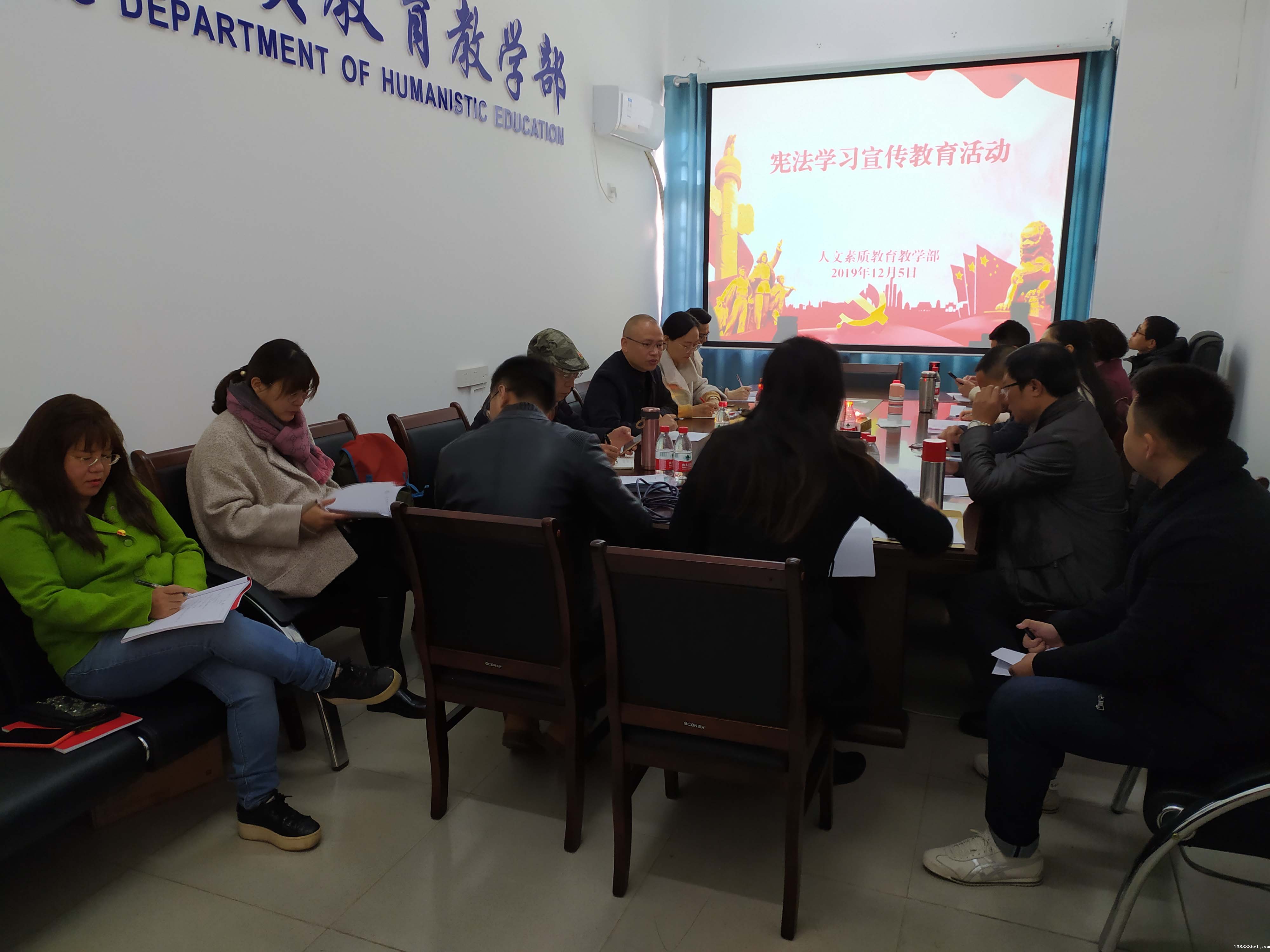 为深入学习贯彻党的十九大精神和全国教育大会精神,认真落实习近平总书记关于宪法学习宣传教育的系列重要指示精神,根据 2019 年全国“宪法宣传周”工作安排和学校有关通知的要求,12月5日上午,韦德电竞组织全体教职工在屏风7110党员活动室召开了宪法宣传学习教育会议。会议由直属党支部覃业飞书记主持。