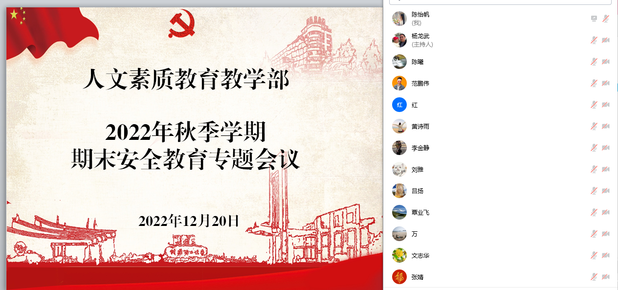 为认真贯彻落实党的二十大精神和习近平总书记关于安全生产和消防工作的重要指示精神,根据国务院安委会、自治区安委会部署要求,韦德电竞于2022年12月20日下午在线上召开了2022年秋季学期末安全专题会议会议,部门全体领导和教职工参加了会议,会议由万千副主任主持。