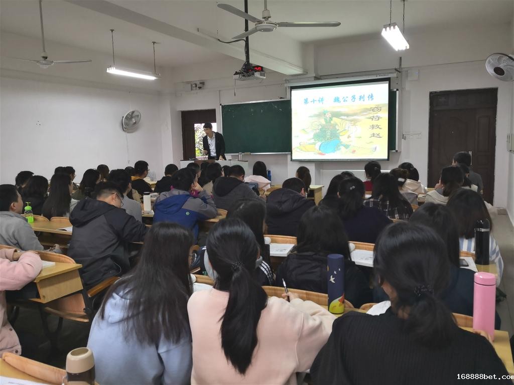 程建老师公开课内容是《大学语文》第五单元“冰雪肝胆”中的《魏公子列传》一文。首先他以“你说我猜”导入新课,通过猜成语形式把课堂气氛充分调动起来。接着结合课文,由司马迁“子承父志”创作《史记》,自然引申到“孝道”,程建老师庄重而不失风趣地揭示了孝道的真正意义。同时结合时代背景,谈到“战国四大公子”的礼贤下士,凸显了人才之于单位、国家的重要性。最后,围绕信陵君窃符救赵事件,重点对信陵君无忌、侯赢、朱亥、如姬、晋鄙等人物形象作了分析。课程在潜移默化中培育了大学生的爱国精神和社会责任感,引导他们树立正确的人生观、价值观。