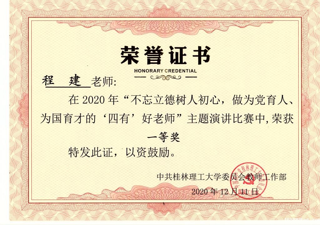 学校组织本次演讲活动,旨在引导广大教师潜心教育事业,通过传道、授业、解惑为党和国家培养合格的社会主义接班人。我部教师程建荣获此佳绩,是我部长期以来高度重视人文素质教育工作的体现。希望所有教师在今后的工作中立足本职岗位,不忘初心、牢记使命,砥砺前行。