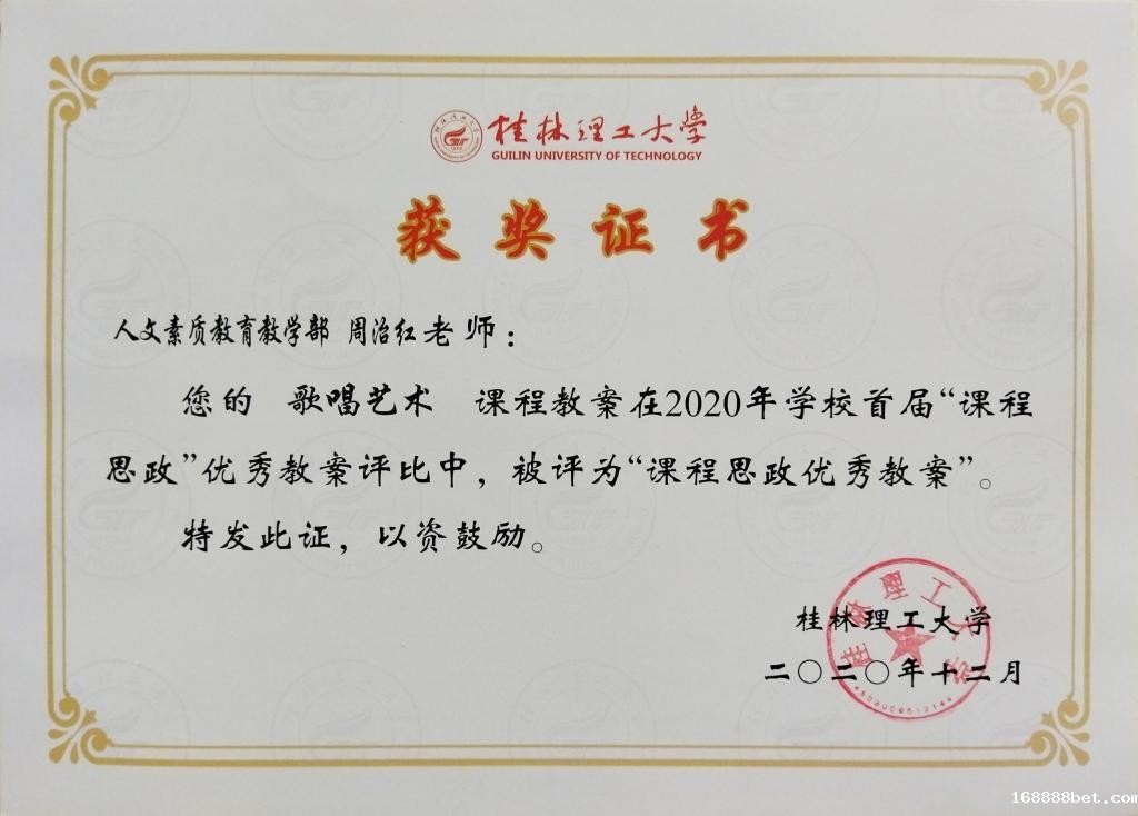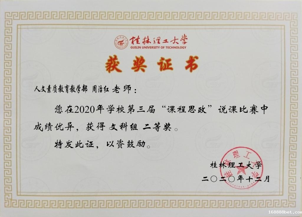周治红老师课程思政优秀教案获奖证书