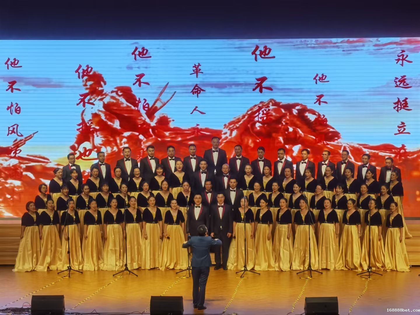 飞扬的歌曲,演绎时代的乐章。在悠扬的钢琴伴奏曲中,铿锵有力的朗诵缓缓向大家讲述,专业的舞者炫出青春的活力,在指挥的带领下,合唱队不断变化的和声演绎出了永葆革命精神的奋斗者的万丈豪情和雄心壮志。精彩的演出赢得了台下阵阵掌声,赢得了现场领导、评委、观众的一致赞誉。最终,我们的团队以98.09分,荣获一等奖第一名。