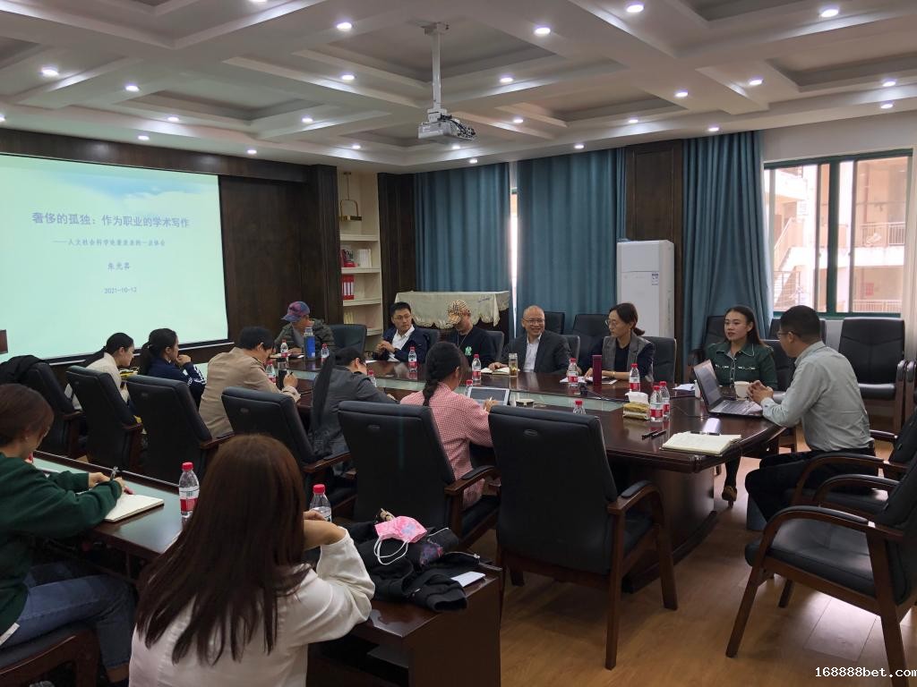 2021年10月12日下午在雁山07517会议室,韦德电竞开展部门中青年教师科研能力提升培训,邀请了管媒学院副院长朱光喜教授作题为《奢侈的孤独:作为职业的学术写作》主题讲座。讲座由部门主任覃业飞主持,部门全体教师参加。
