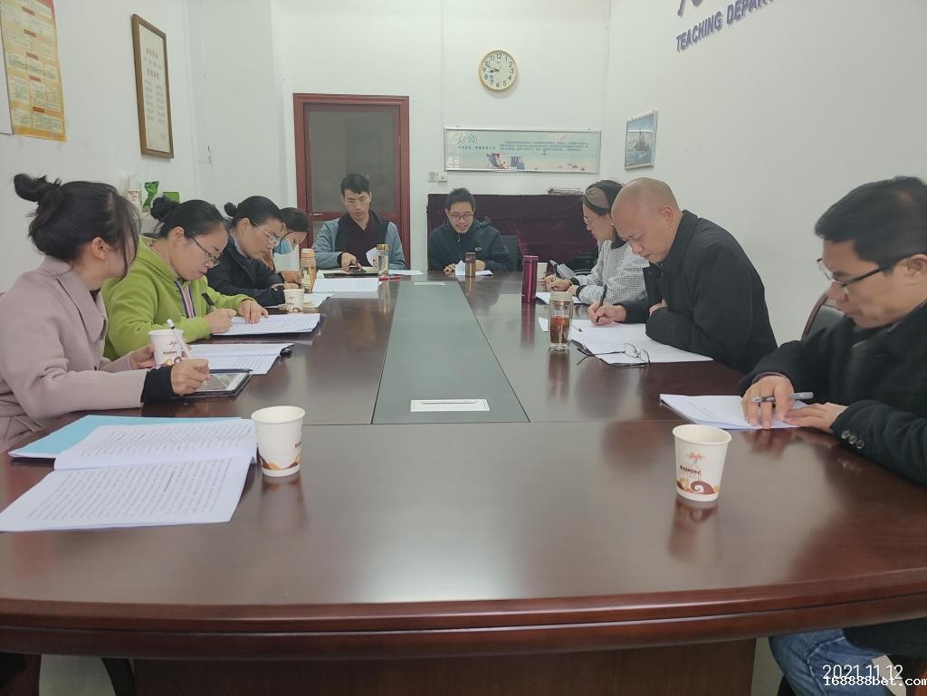 11月12日上午8:30,大学语文课程改革论证会在屏风7110会议室召开。会议由文学教研室主任陈曦主持,部门主任覃业飞、副主任万千莅临指导,文学教研室教师参加会议。