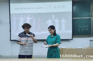 通过介绍文场代表性人物—何红玉先生(国家级非物质文化传承人,桂林理工大学58级校友),带领学生回顾了我校的发展史,增强了学生们对学校的荣誉感和使命感。同时,通过了解榜样人物何红玉先生对广西文场的执着追求与巨大贡献的事迹,并结合今年“第六个科技工作者日”的宣传片,在润物细无声中,使学生树立良好的职业理想和工匠精神。