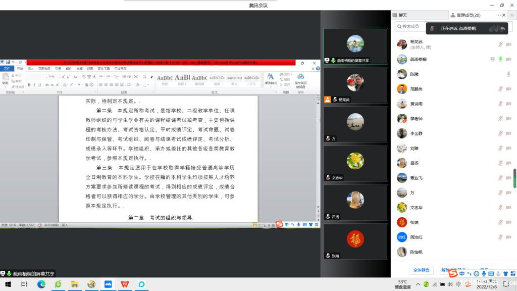 2022年12月6日下午,我部通过腾讯会议线上开展本科教学“正风肃纪”专项行动学习会,部门全体教职工参加,会议由部门副主任万千主持。