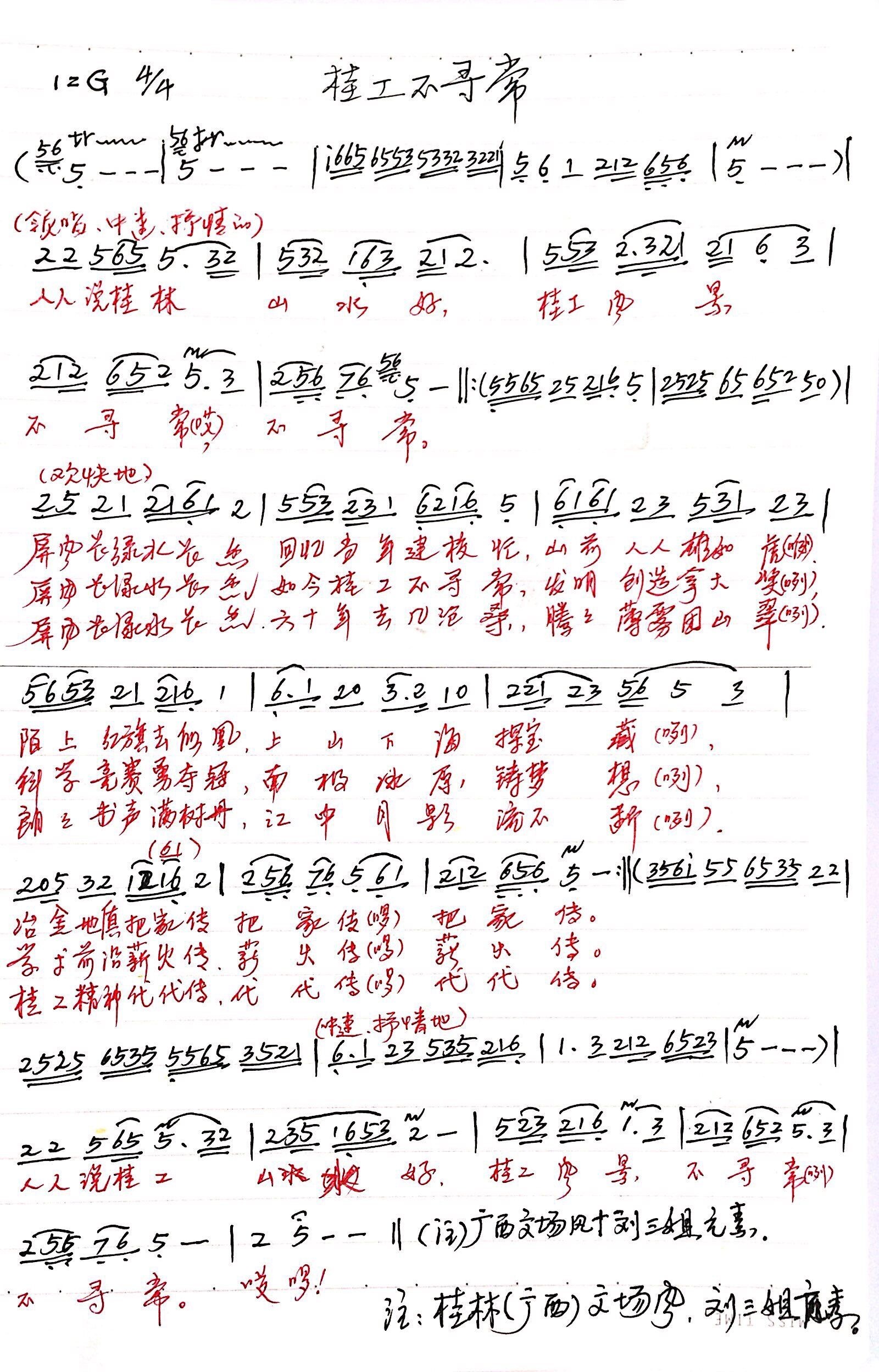 人人说桂工山水好,桂工风景不寻常咧,不寻常,哎~啰!